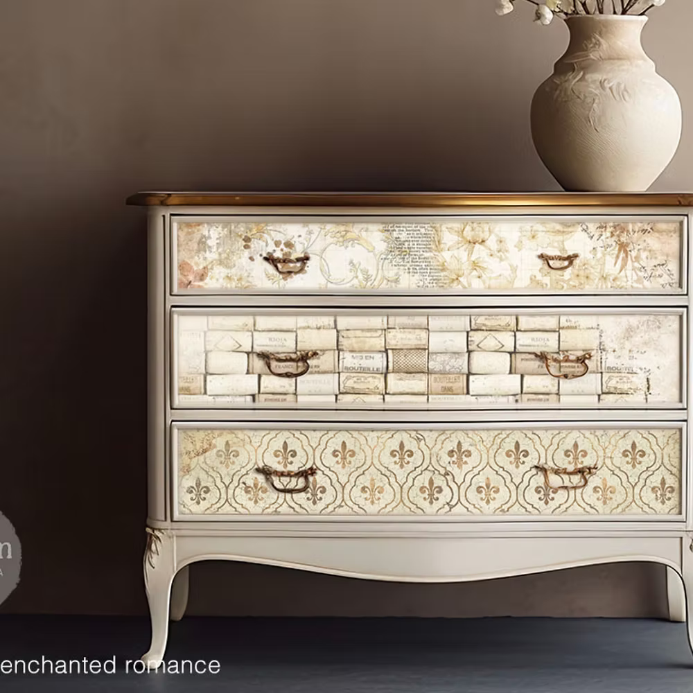Triple the fun! Introducing NEW Redesign with Prima® Découpage Paper Triple Packs, with three beautiful designs perfectly curated to mix and match on your next DIY project! “Enchanted Romance” provides three sheets with a romantic and elegant aesthetic that is perfect for creating projects with a touch of enchantment. The creamy whites and linen tones lend a soft, delicate backdrop for lovely loose florals, a collection of vintage corks, and a lovely fleur-de-lis design. Let your imagination soar as you incorporate these elements into your artistic creations for an enchanted romance!